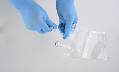 - unplug the stopper from 500ml fluid bag