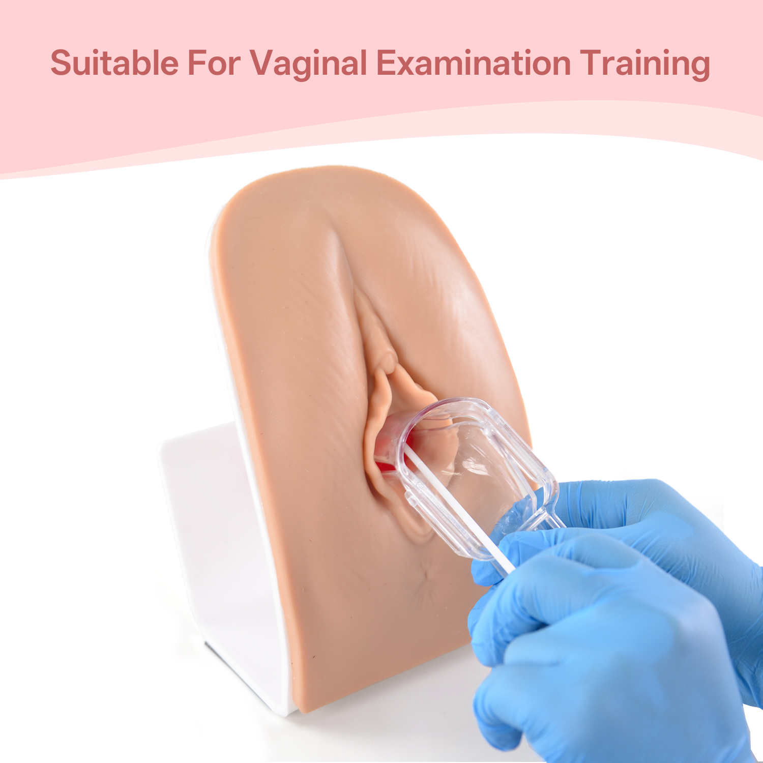 The vaginal examination model with simplistic design allows user to practice vaginal examination. User can use speculum to examine the vagina and cervix on the model.